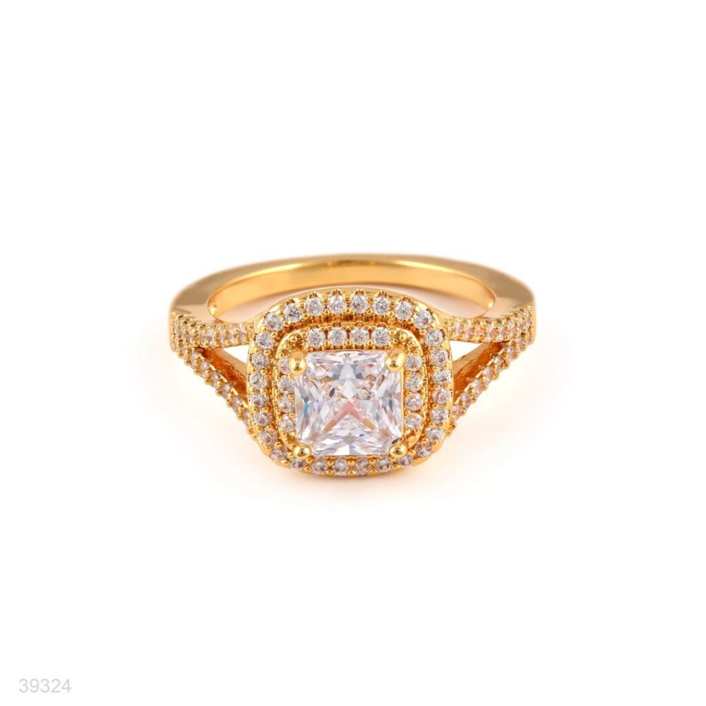 Ring Square Elegant Zircon Lux-Gold-Clear